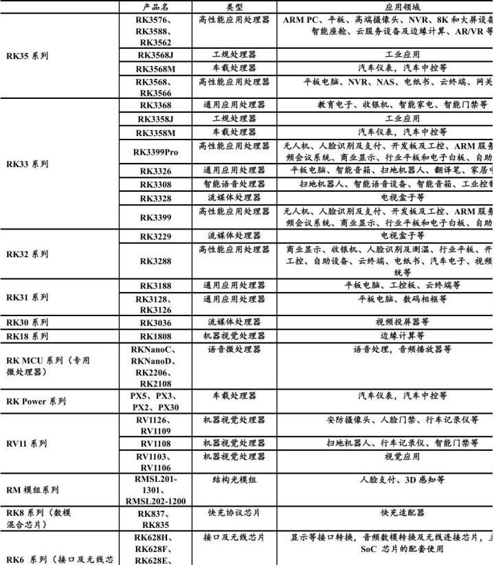 瑞芯微早在这个领域就开始了布局,并研发出了不同种类的机器人芯片。